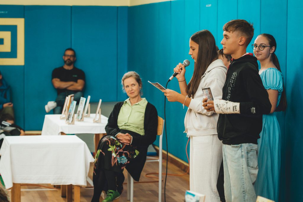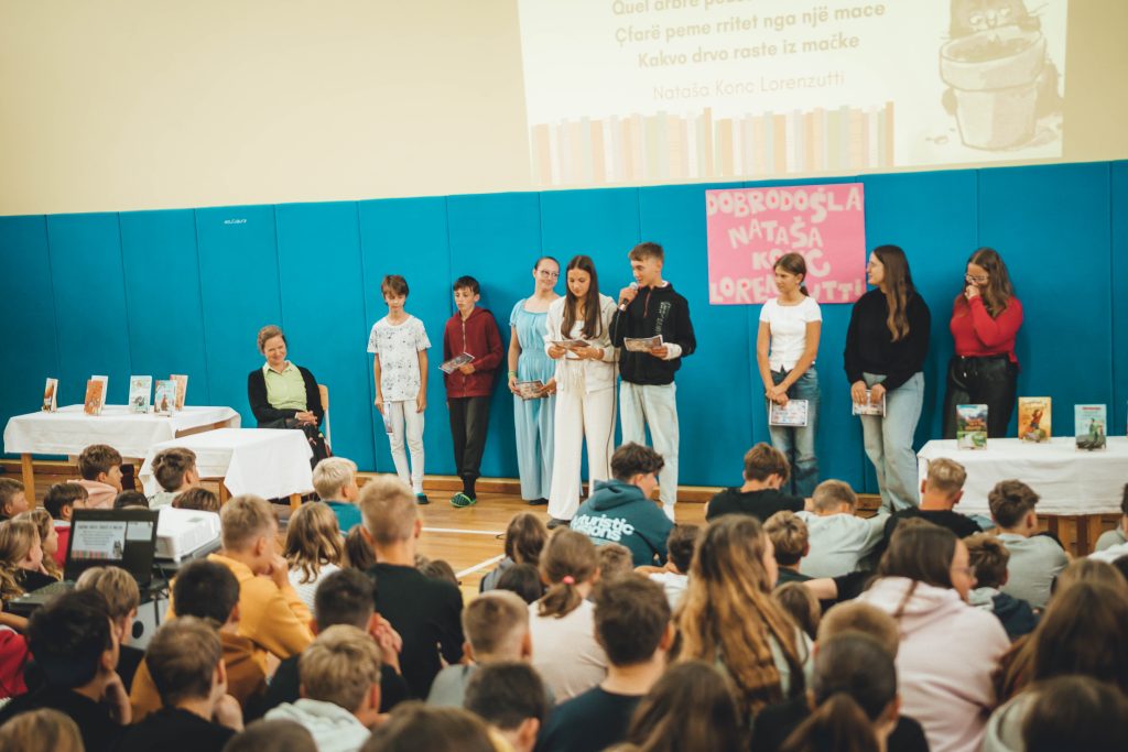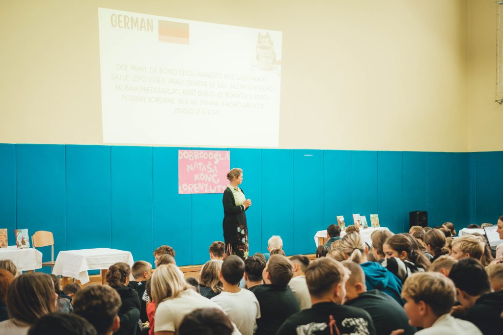 Dogodek smo obogatili s posebnim darilom – eno izmed njenih zgodb so učenci prevedli v jezike, ki jih govorijo na naši šoli. Tako je zgodba hkrati zazvenela v slovenščini, angleščini, nemščini, francoščini, albanščini, srbščini in ruščini. Projekcija izvirnega besedila in prevodov je ustvarila čudovito večjezično izkušnjo, ki je še posebej poudarila pomen evropskega dneva jezikov.