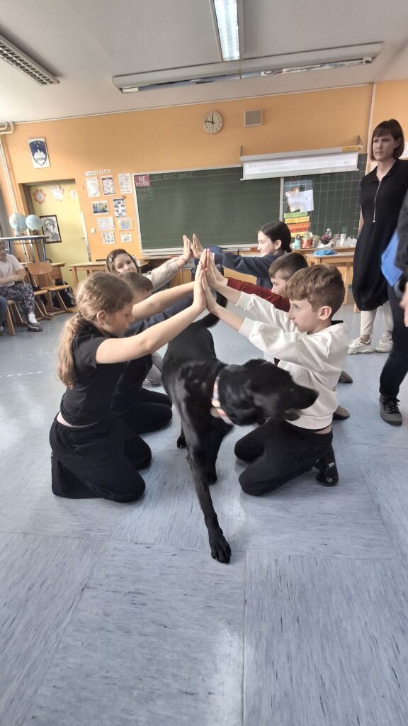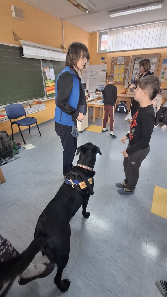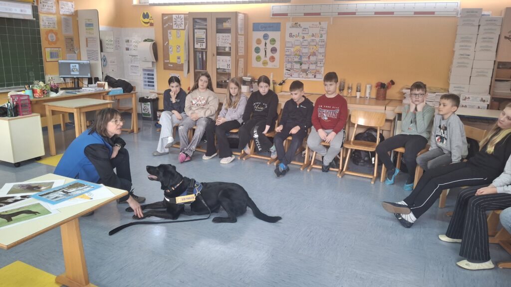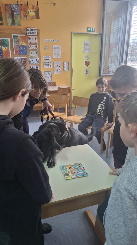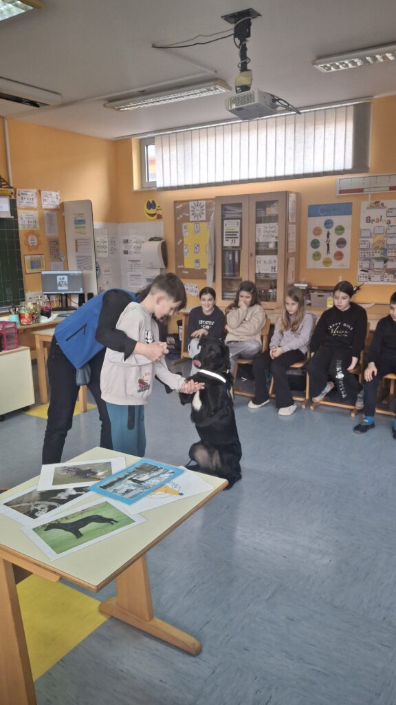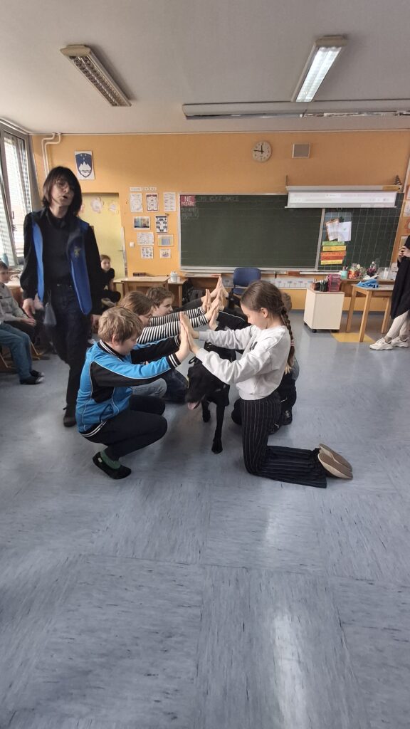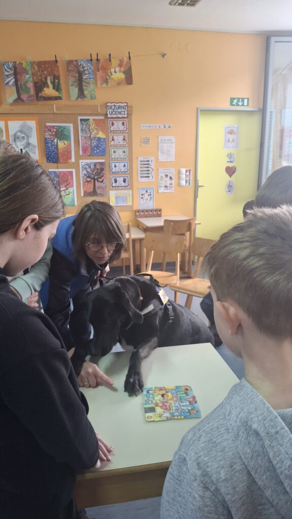 Včeraj, 12. 3. 2026, smo imeli na naši šoli prav poseben obisk. V 4. a razredu nas je obiskal terapevtski par, ga. Janja Brglez in njena psička Luna, ki sta vključeni v prostovoljno društvo Tačke pomagačke. V uvodu ure smo spoznali pasji bonton, kako se primerno približati psičku, kako ga pobožati in zanj ustrezno poskrbeti. Luna je zelo prijazna, igriva, radovedna in delovna psička, zato smo jo lahko pobližje spoznali, jo pobožali in z njo izvajali trike. Pri urah slovenščine opisujemo živali, zato je bil obisk več kot dobrodošel. Učenci smo spoznali različne pasme psov, opisovali živali in urili spretnosti branja in pripovedovanja. Ugotovili smo, da je pes čudovit prijatelj pri branju in usvajanju snovi, saj pomaga pri sprostitvi, pozorno posluša, ne sodi, kritizira ali se smeji kot vrstniki in dovoljuje, da beremo in se učimo v svojem lastnem ritmu. Psi razveseljujejo, opogumljajo in motivirajo, zato bomo psičko Luno z veseljem povabili, da se nam pridruži še pri kakšni učni uri.