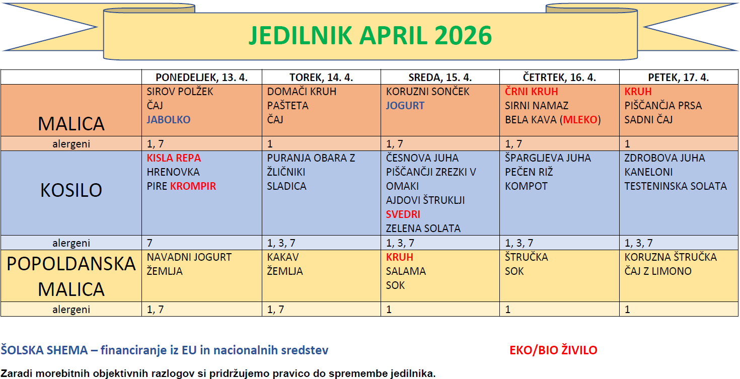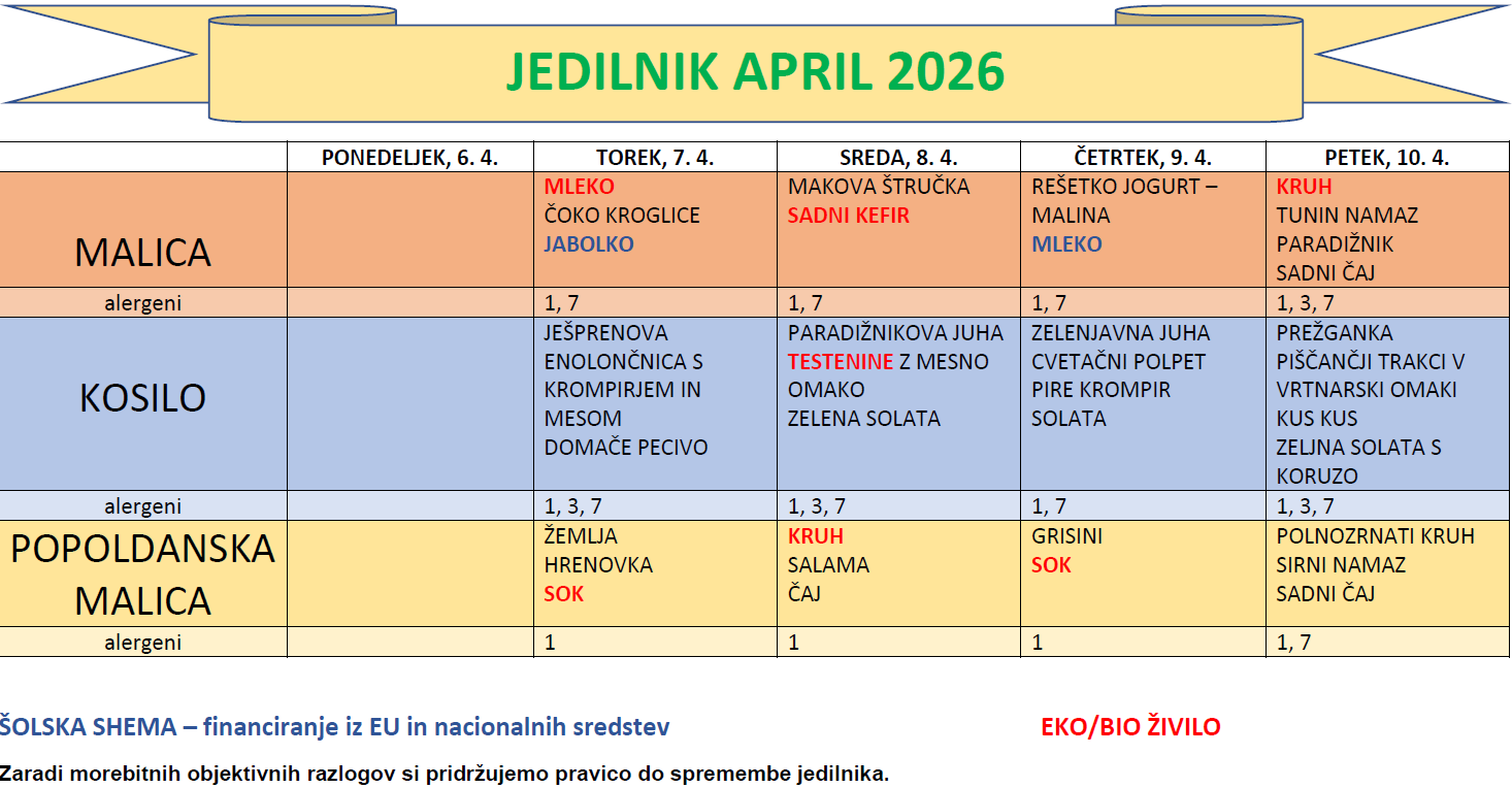 JEDILNIK APRIL 2026